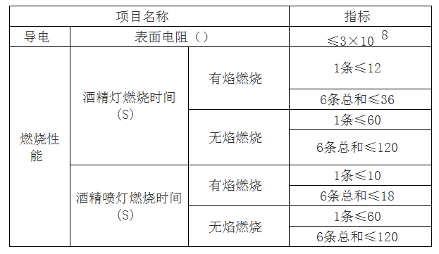 5、涂覆布的安全性能 ( 如表所示 )