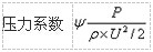 ψ=壓力系數、P=全壓(Pa)、ρ=氣體密度(Kg/m3)、U=葉輪外緣園周速度(m/s)。