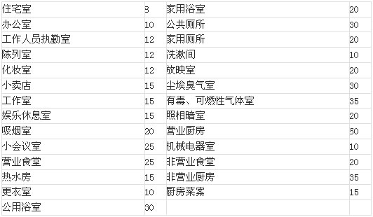 每平方米地面面積的換氣量(米3/時?米2)