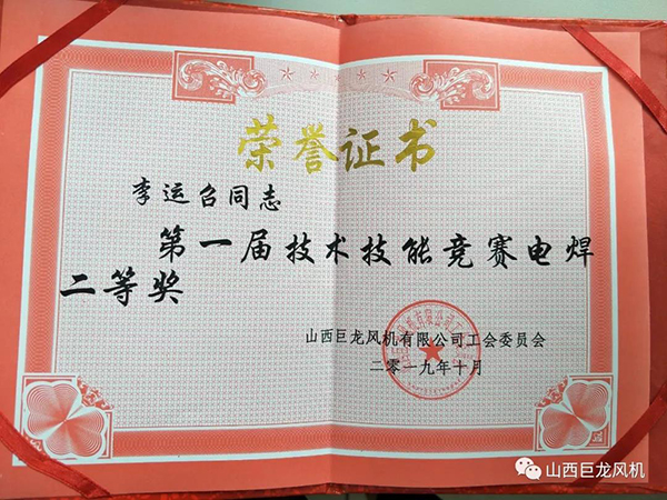 10月18日下午16:30分,公司在生產部門口召開了“巨龍風機第一屆技術技能競賽表彰總結大會”。向榮獲【山西巨龍風機有限公司】“第一屆技術技能競賽”的員工頒發(fā)了獎金及證書。